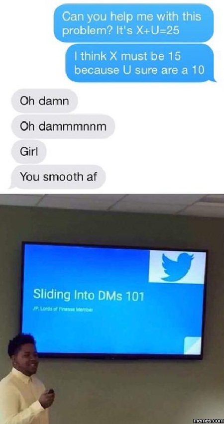 How To Slide Into Her Dms Examples, DMs > Tinder - Bodybuilding.com Forums - Racking your brains over what things to say when sliding into dms, you should not reinvent the wheel.. And the very phrase "sliding into dms" applies to a message you send someone on a social network (most often on twitter or instagram) with the overall goal to make a romantic acquaintance. In fact, dms is an abbreviation for direct messages. With time, you will develop several tricks to increase chances of success. How do you slide in the dm? I hope you found this article expansive in the sense of how to intentionally slide into her dms.